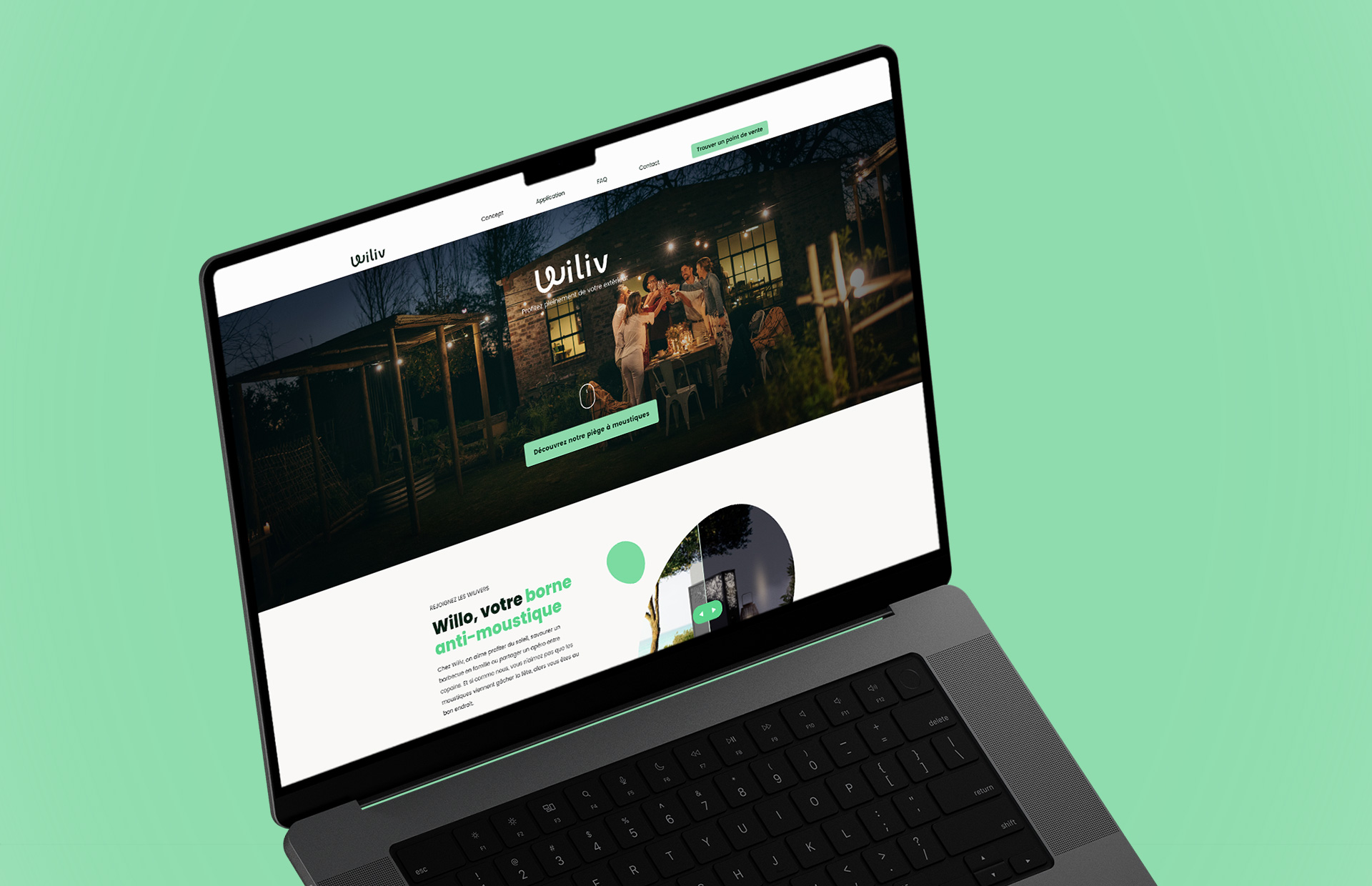 Capture d’écran intégrée de la version desktop du site internet Wiliv, conçu sur Figma et intégré avec WordPress Elementor Pro par Julien Maurel, graphiste webdesigner freelance à Toulouse.